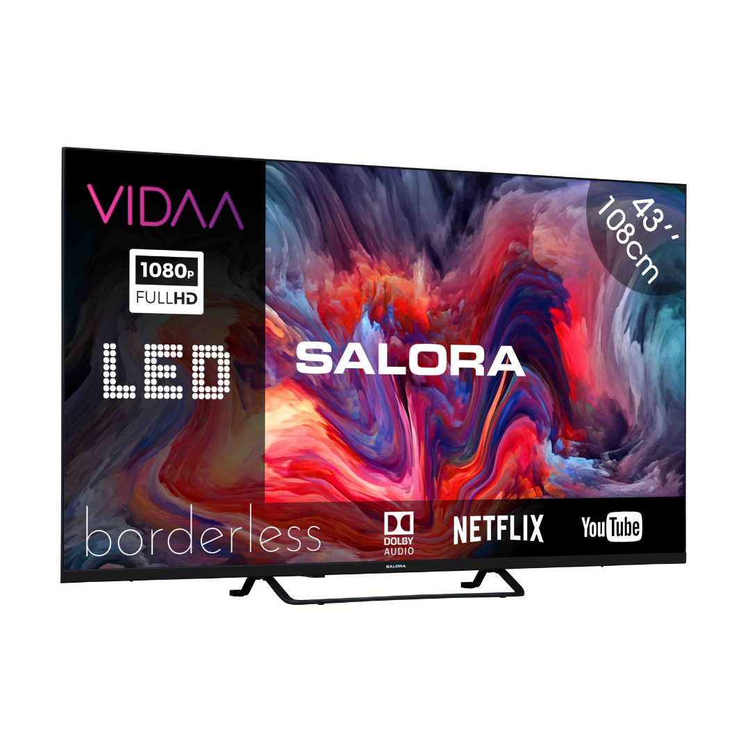 Mit dem Salora FOD43FV erhalten Sie das beste Seherlebnis Ihrer Lieblingsserien von Netflix und Ihrer besten TV-Programme. Dieser FOD43FV hat eine Bildschirmdiagonale von 43 Zoll (109,2 cm). Darüber hinaus ist dieser Smart-TV randlos, was die Bilddarstellung besonders angenehm macht. Dieser Fernseher ist standardmäßig mit Netflix, Youtube, Amazon Prime, Disney+, NLZiet, KIJK und Viaplay ausgestattet