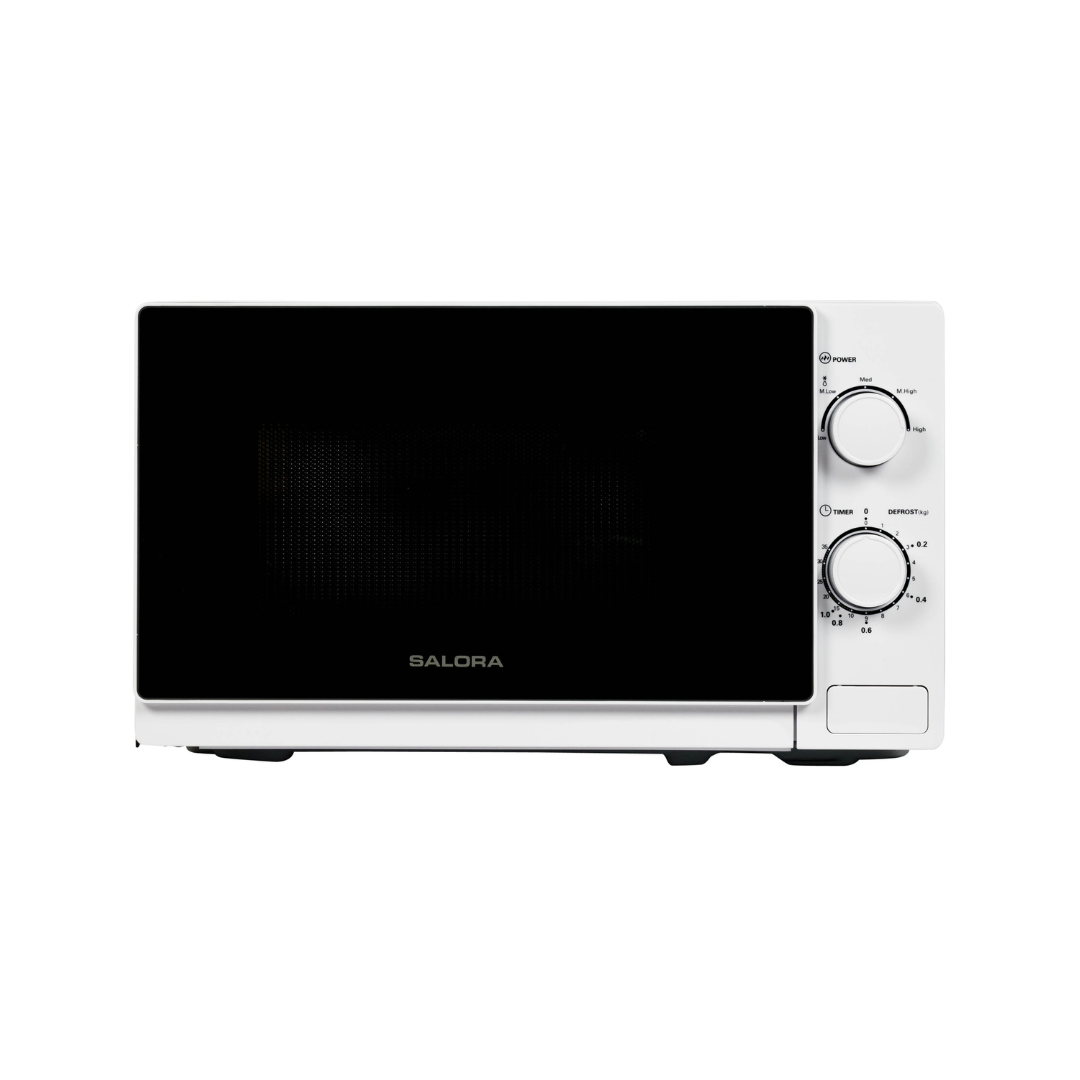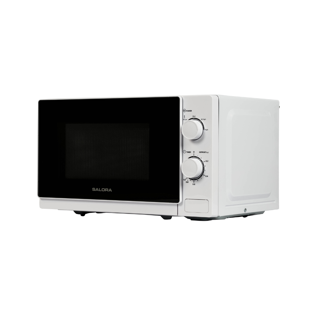 Die Salora 20MSM700 ist eine freistehende Solo-Mikrowelle mit einem Fassungsvermögen von 20 Litern und einer Leistung von 700 W. Diese Mikrowelle ist mit verschiedenen nützlichen Einstellungen ausgestattet, darunter einer Auftaufunktion und einem Timer .