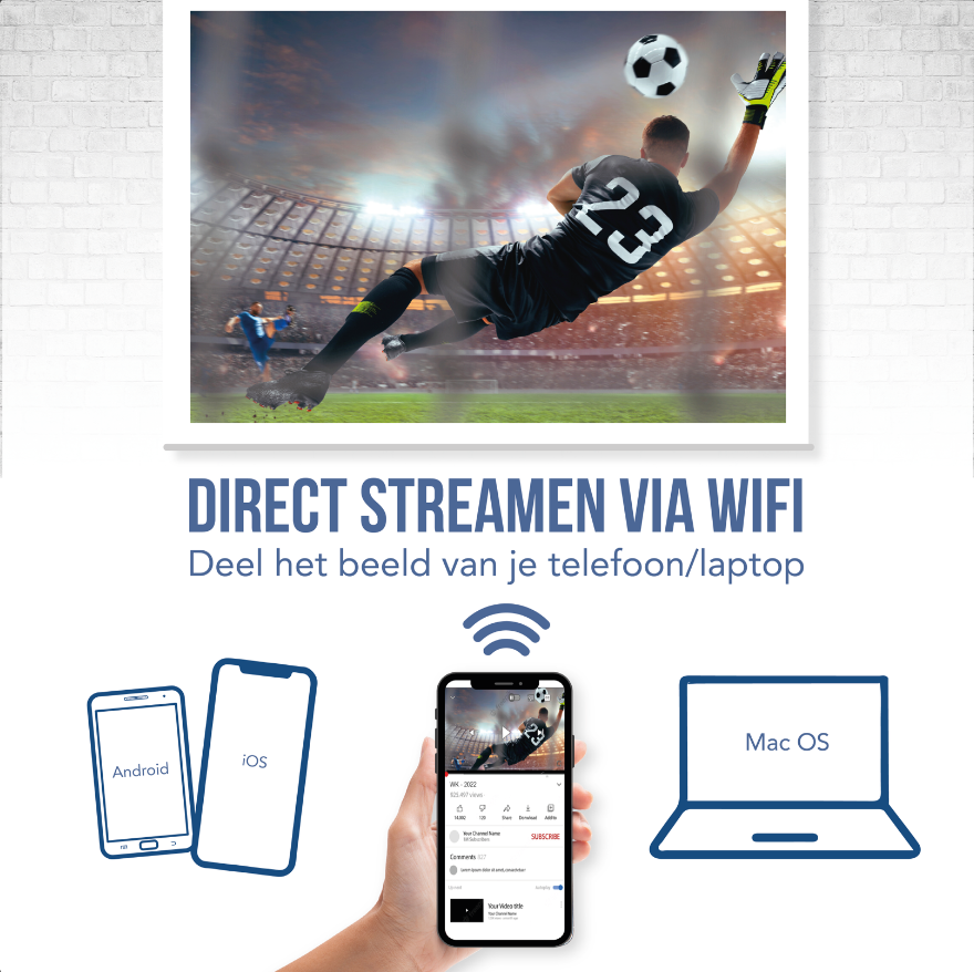 Mit 3 verschiedenen Verbindungen können Sie Ihre Sendungen auch über Ihren Chromecast ansehen. Laptop. Wiedergabe über Fernseher oder Spielekonsole. Egal ob iOS. Android oder Playstation gehen. Dieser intelligente Projektor kann alles bewältigen.