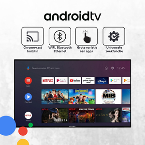 Met Android TV heb je direct toegang tot een breed aanbod aan apps, waaronder Netflix, YouTube en Disney+. De ingebouwde Chromecast maakt het eenvoudig om content vanaf je smartphone, tablet of laptop te streamen naar het grote scherm.