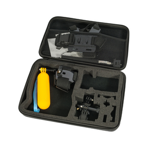 Ein sehr komplettes Zubehörpaket für Ihre Action-Cam in einem luxuriösen Gehäuse zum Skaten, Tauchen, Radfahren und vielem mehr. Zum Inhalt gehören: Tragetasche, Selfie-Stick, schwimmender Handgriff, Brusthalterung, Kopfgurt und verschiedene Befestigungsmöglichkeiten. Die Tasche bietet zusätzlichen Platz für die Aufbewahrung Ihrer Action-Kamera.