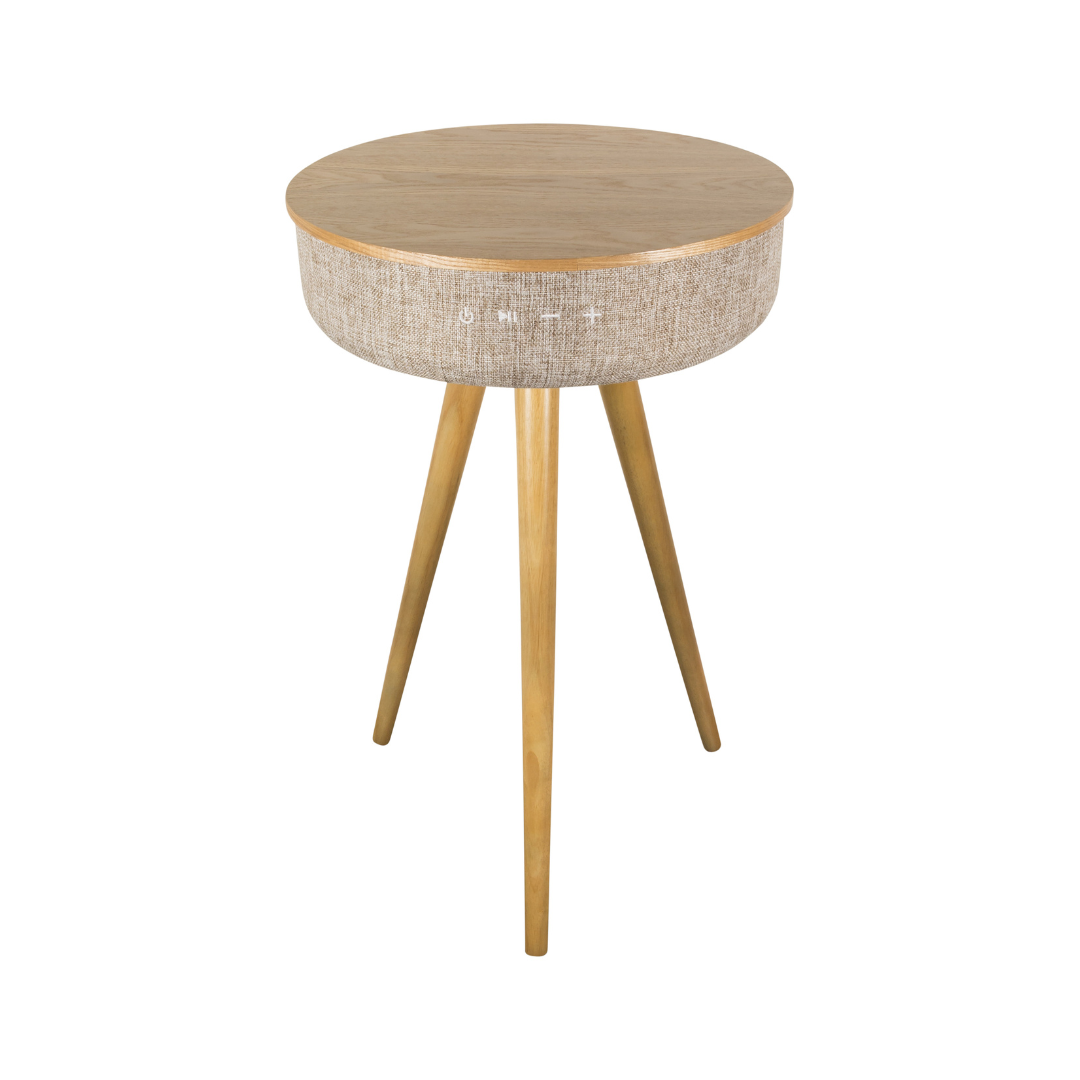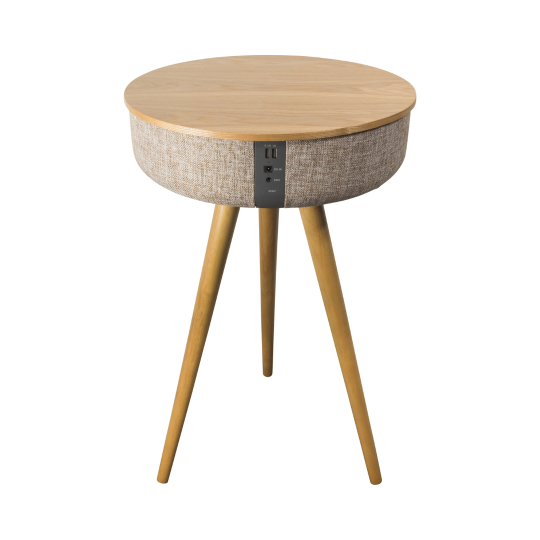 Der Salora AirTable ist ein Bluetooth-Lautsprecher im Tischdesign im Retro-Look mit hervorragender Klangqualität. Dieser Designer-Lautsprecher bietet dank der 6 integrierten Lautsprechereinheiten ein 360-Grad-Klangerlebnis.