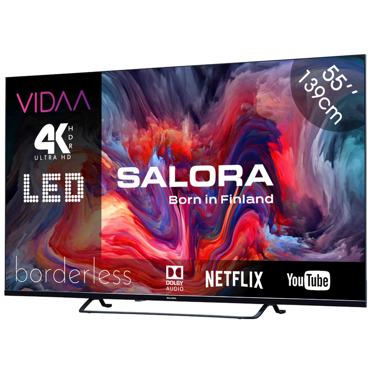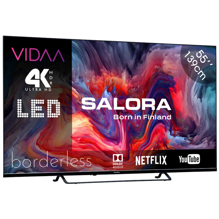Mit dem Salora FOD55UV erhalten Sie das beste Seherlebnis Ihrer Lieblingsserien von Netflix und Ihrer besten TV-Programme. Dieser FOD55UV verfügt über eine Bildschirmdiagonale von 55 Zoll (139,7 cm) mit einem 4K-Ultra-HD-Bildschirm. Darüber hinaus ist dieser Smart-TV mit HDR10 ausgestattet, was eine sehr genaue Farbdarstellung ermöglicht. Was den Fernseher noch angenehmer macht, ist, dass er randlos ist! Dieser Fernseher ist standardmäßig mit Netflix, Youtube, Amazon Prime, Disney+, NPO Start, NLZiet, KIJK und Viaplay ausgestattet.