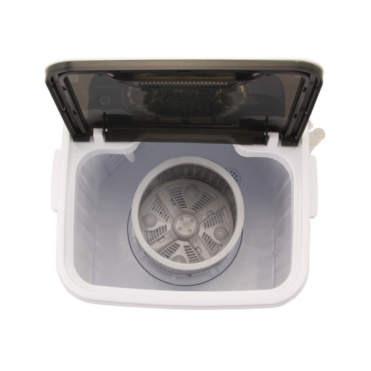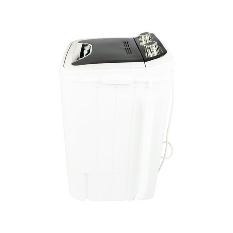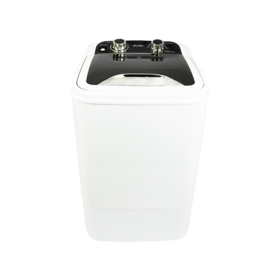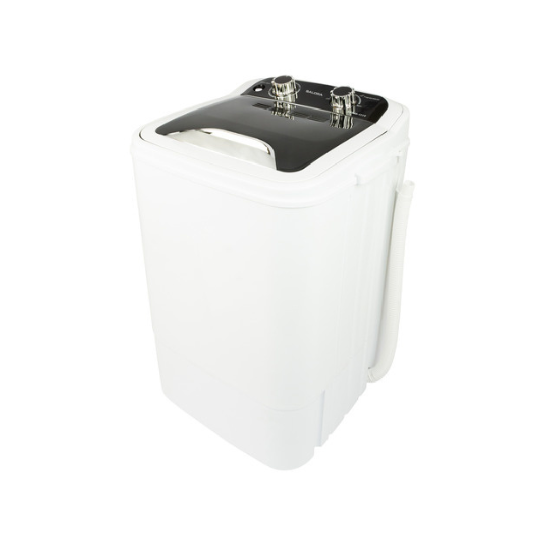 Diese kompakte Salora WMR5350 Mini-Waschmaschine hat ein Beladungsgewicht von 4,6 kg und ein Beladungsgewicht für die Zentrifuge von 2 kg. Die Waschmaschine verfügt über einen 15-Minuten-Timer. Eine sehr praktische Waschmaschine für Camping- oder Studentenzimmer.