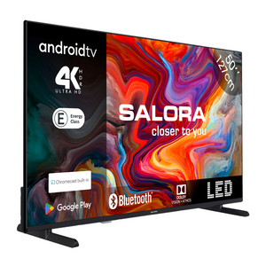Der Salora-Fernseher verfügt standardmäßig über integriertes WLAN, mit dem Sie eine Verbindung zum Internet herstellen können. Dank des integrierten Google Chromecast können Videos ganz einfach über Ihr Smartphone gestreamt werden. Auch auf diesem Smart-TV sind standardmäßig die Apps Netflix, YouTube und Amazon Prime installiert. Auf diese Weise können Sie ganz einfach Ihre Lieblingsfilme und -serien ansehen. Weitere Apps und Spiele können Sie über die Android TV-Plattform von Google herunterladen. Nutzen Sie den Fernseher als kabellosen Lautsprecher, indem Sie ein Smartphone über Bluetooth verbinden.