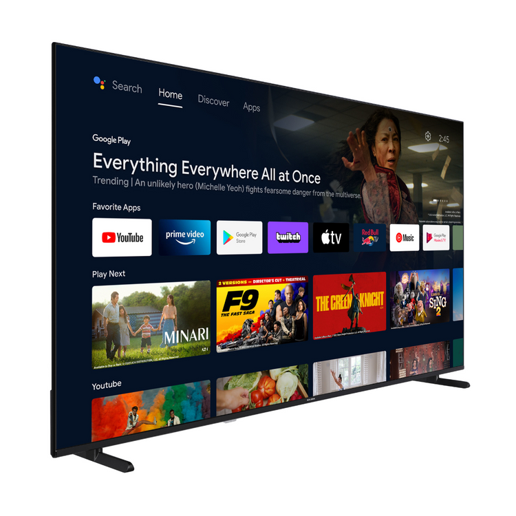 Der Salora-Fernseher verfügt standardmäßig über integriertes WLAN, mit dem Sie eine Verbindung zum Internet herstellen können. Dank des integrierten Google Chromecast können Videos ganz einfach über Ihr Smartphone gestreamt werden. Auch auf diesem Smart-TV sind standardmäßig die Apps Netflix, YouTube und Amazon Prime installiert. Auf diese Weise können Sie ganz einfach Ihre Lieblingsfilme und -serien ansehen. Weitere Apps und Spiele können Sie über die Android TV-Plattform von Google herunterladen. Nutzen Sie den Fernseher als kabellosen Lautsprecher, indem Sie ein Smartphone über Bluetooth verbinden.