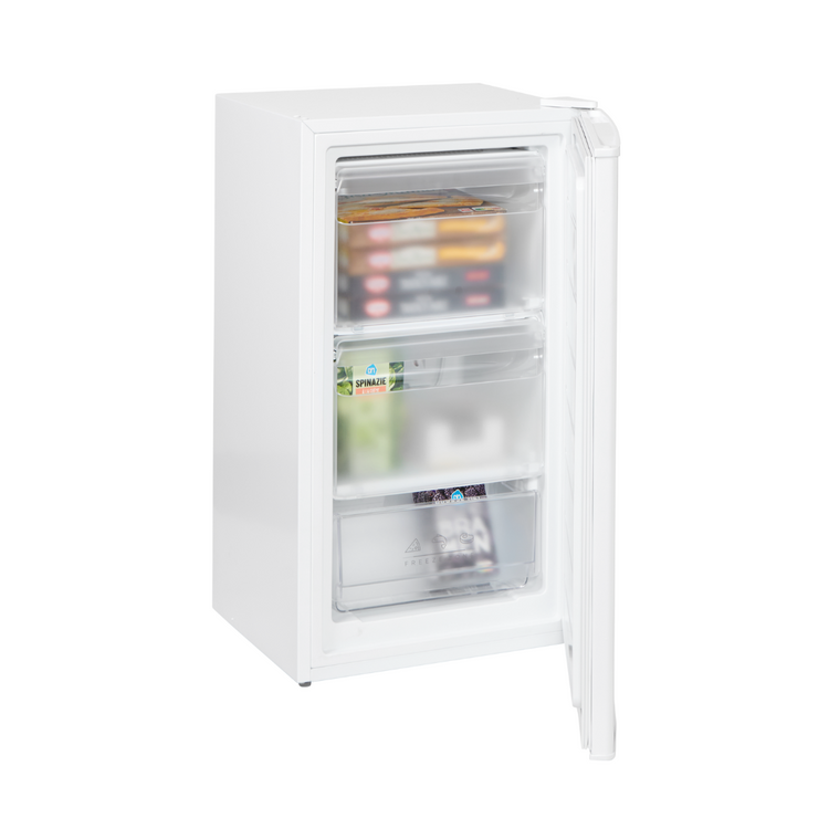 Trotz seiner Kompaktheit können Sie darin eine ganze Menge Lebensmittel aufbewahren. Der Gefrierschrank verfügt über 3 Schubladen und hat eine Gefrierkapazität von 6 kg pro 24 Stunden. Und dank LED-Innenbeleuchtung haben Sie Ihre Einkäufe immer gut im Blick.