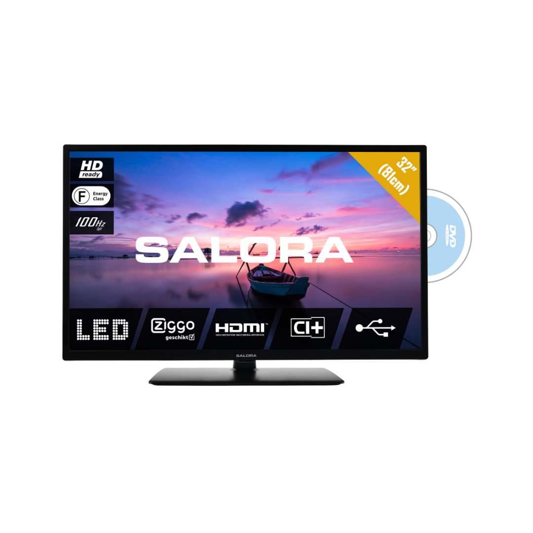 The Salora 32HDB6505 is a beautiful matte black 32" (82CM) HD LED TV/DVD combination with impressive image quality and smooth playback thanks to the 100Hz bpr technology. With the built-in DVB-T2/C CI+ tuner you can enjoy various digital providers and the TV is even Ziggo certified. With the handy USB media player you can effortlessly play a variety of media formats.
