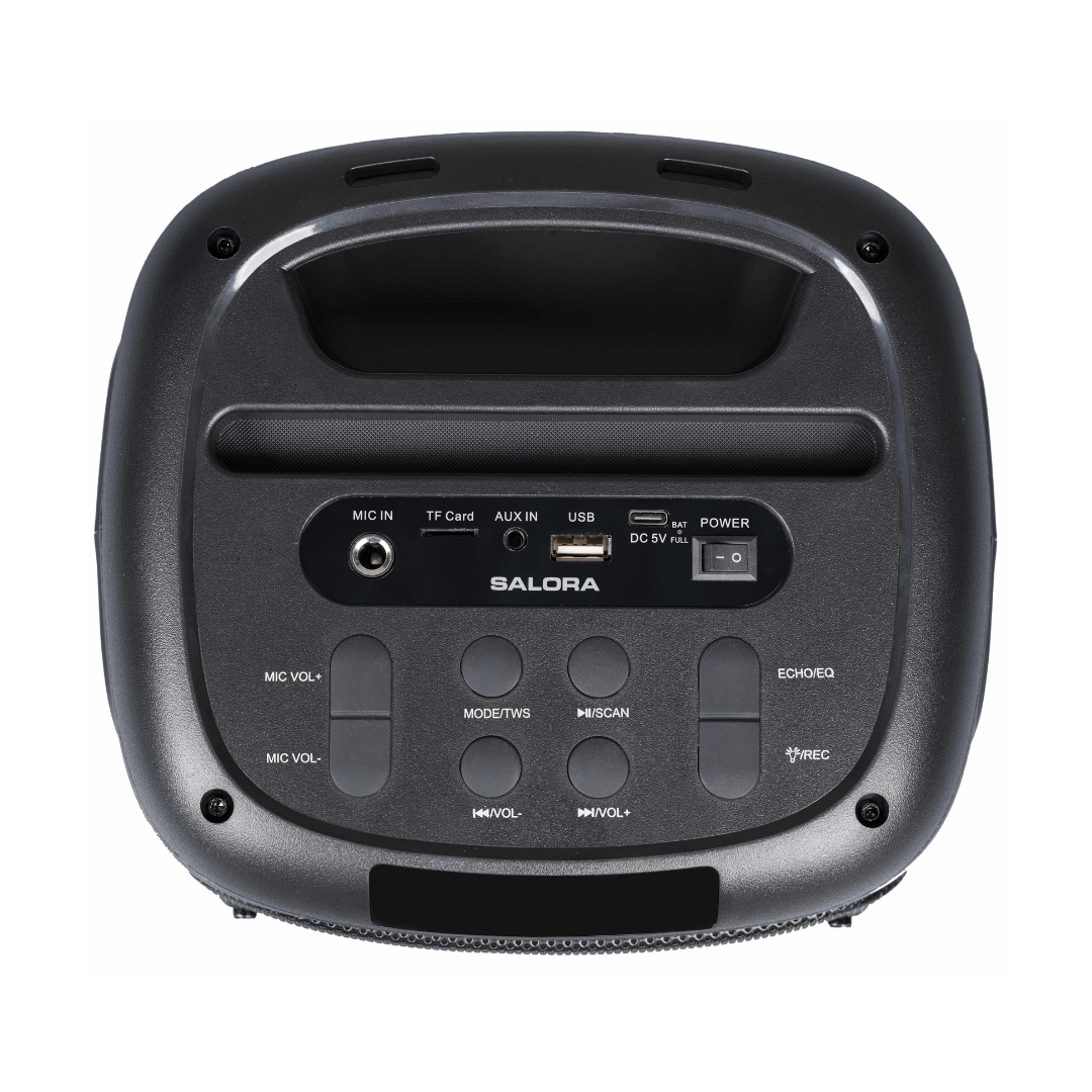 Have you always wanted to have fun karaoke evenings with friends and/or family but don't want to spend too much money on borrowed equipment? Salora even has the solution for this, because not only the light show and the beautiful audio are nice about this PartySpeaker, but this Speaker also has a function to sing along to karaoke.