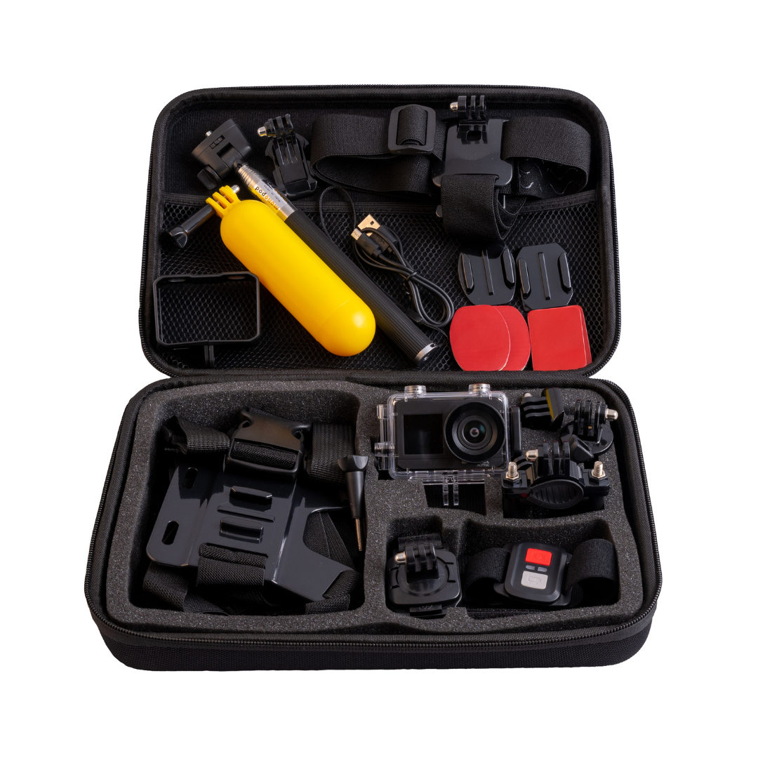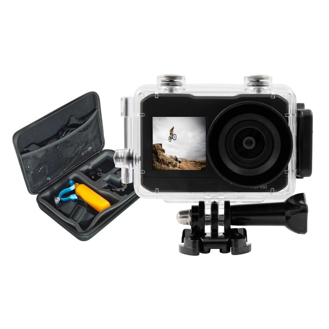 Daarnaast zit de ACP950 boordevol accessoires, waaronder een selfiestick, chestmount, headmount en nog veel meer. Met deze camera kun je genieten van ultra HD-video's (4K, 3840 × 2160 @ 30fps, geïnterpoleerd) en foto's met een resolutie van 16MP (4608 × 3456). Het 2.0" IPS-scherm en het 1.3" front TFT-display zorgen voor een heldere en levendige weergave.