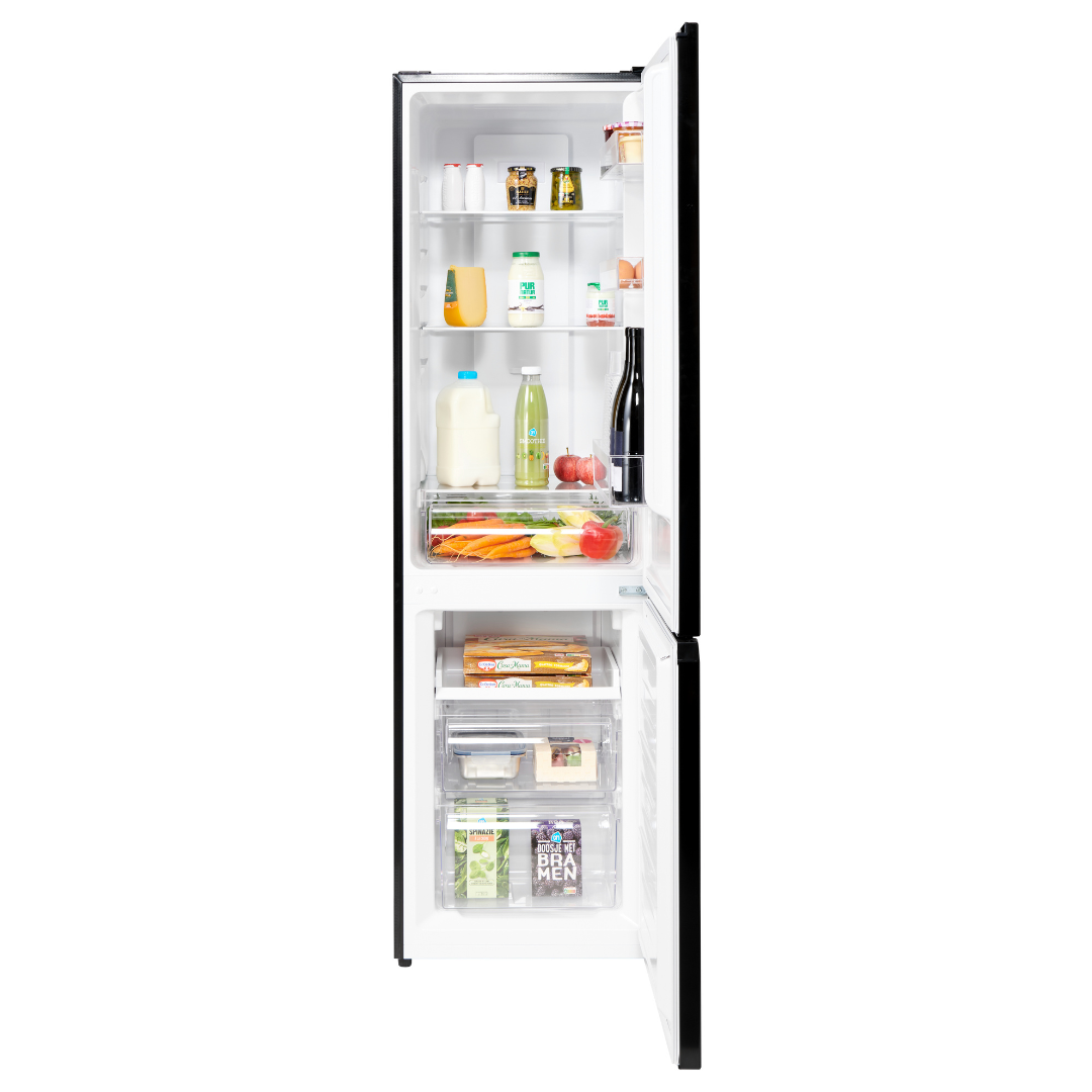 Met een totale capaciteit van 253 liter biedt de Coolfreeze180bl voldoende ruimte voor al je boodschappen. De koelkast heeft een ruim koelgedeelte van 182 liter en heeft verstelbare planken en deurvakken, zodat je al je verse producten gemakkelijk kunt opbergen. Het vriesgedeelte heeft een capaciteit van 71 liter: ruim voldoende ruimte voor diepvriesmaaltijden, ijs en andere ingevroren lekkernijen.