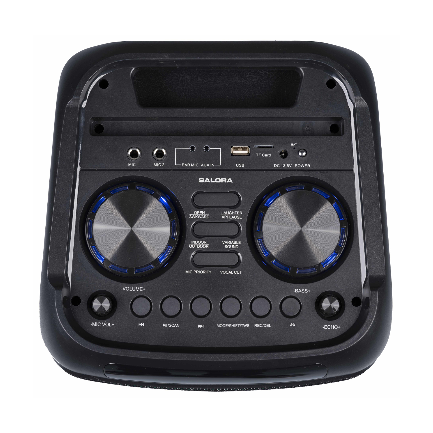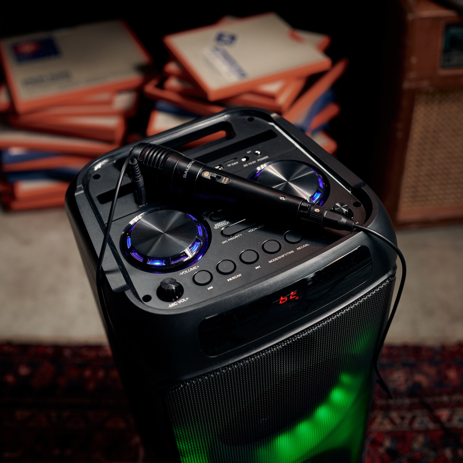 Met twee 10-inch speakers en een vermogen van 400 watt levert de Salora PARTYBOX400 een krachtig geluid dat de feeststemming versterkt. De LED-verlichting zorgt voor een geweldige sfeer en kan worden aangepast aan de muziek, waardoor de speaker nog meer indruk maakt.