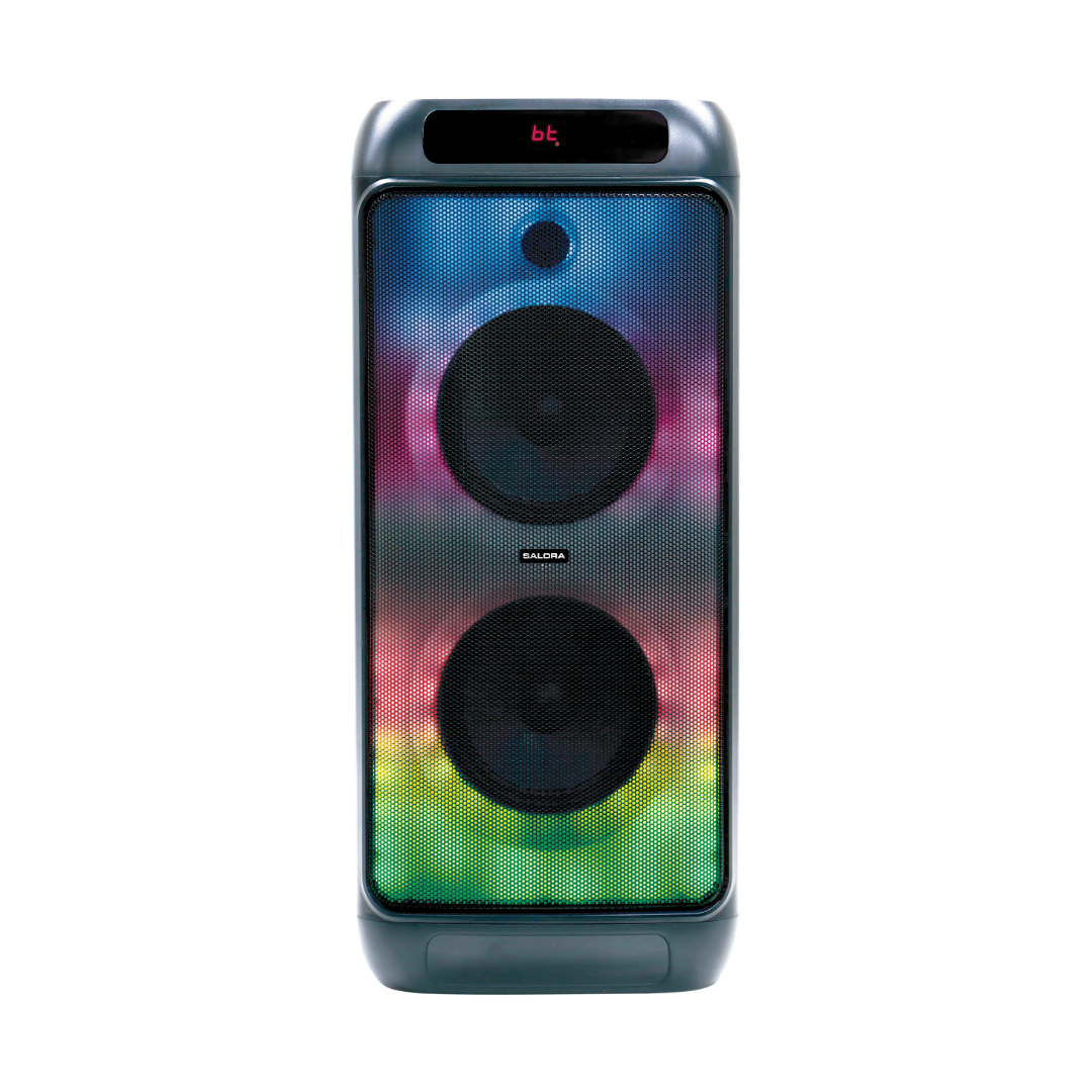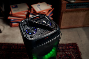 Atlijd al leuke karaoke avonden met vrienden en/of familie willen hebben maar niet teveel geld uit willen geven aan geleende apparatuur? Salora heeft zelfs hier de oplossing voor, want niet alleen de lichtshow en de mooie audio is leuk aan deze PartySpeaker maar ook heeft deze Speaker een fucntie om karaoke mee te kunnen zingen.